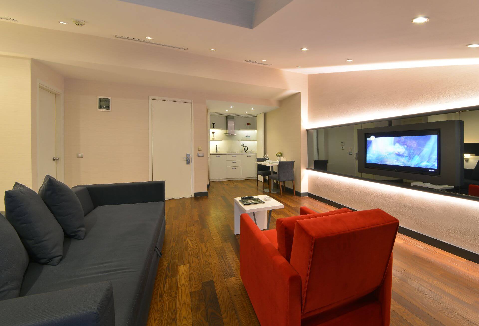 Deluxe Aile Odası, 1+1 plana ve 62 m² büyüklüğe sahiptir. Süitimizde çift kişilik yatak, özel olarak dizayn edilmiş gardırop, LED TV ve mini bar bulunmaktadır. Salon bölümünde yer alan yatak olma özelliğine sahip koltukla 4 kişiye kadar konaklayabileceğiniz, mutfak ve yemek masasının da bulunduğu ayrıcalıklı süit odalarımızdan biridir. Beşiktaş’ta apart kiralama deneyimini, ev konforunda bir süit otelde yaşamak için Deluxe Aile Odası ilk tercihiniz olabilir.
